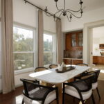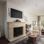 The main level was designed for the way people actually live. Soaring high ceilings open the sun-drenched space from the moment you enter, and the flow between the living room, formal dining room, and eat-in kitchen feels both natural and easy. Updated flooring runs throughout, treetop views filter in through the windows, and a gas fireplace anchors the living room with quiet warmth. A half bath, dedicated laundry room, and pantry handle the everyday details without compromise. The attached two-car garage adds the ease that buyers in this corridor quietly expect.